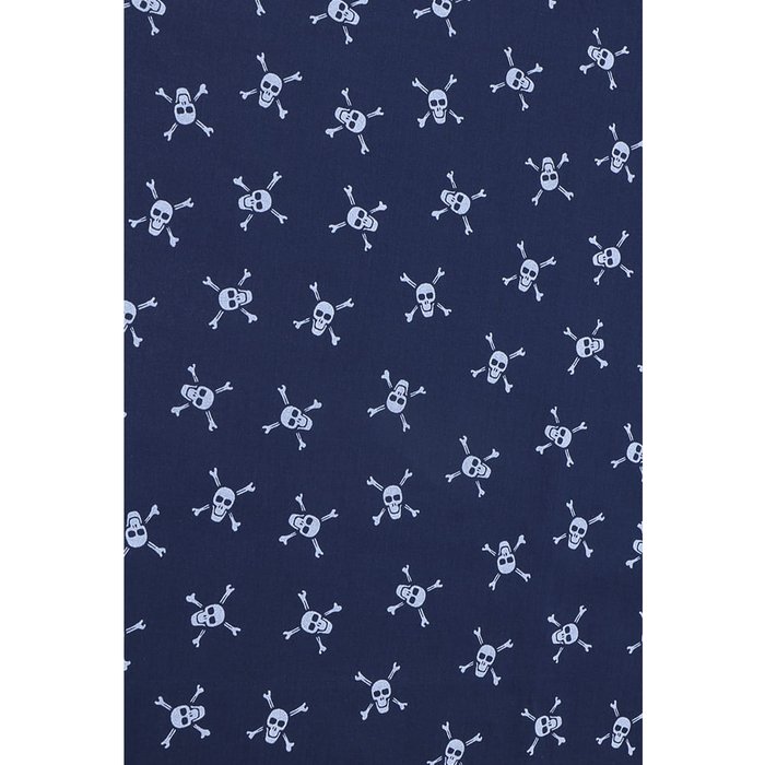 Tecido Tricoline Enrolado Caveira Branca Fundo Marinho - 1,50m de Largura