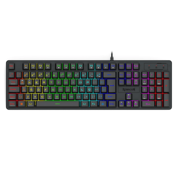 Nome: Teclado Membrana Gamer Redragon Netherbane Iluminação Rainbow Preto ABNT2 K521-R PT