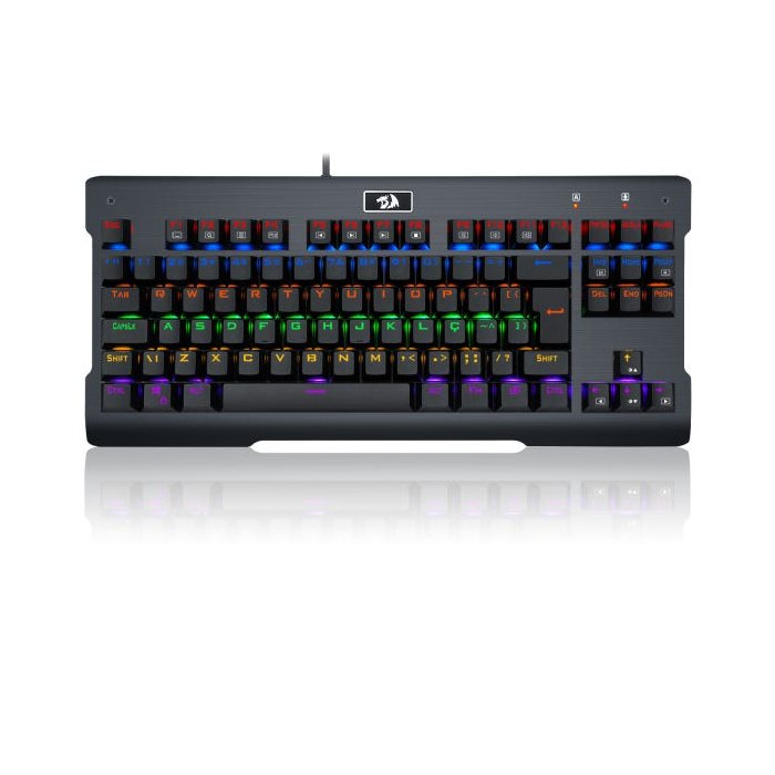Teclado Gamer Mecânico Redragon Visnu Rainbow ABNT2 ***ESTE MODELO NÃO POSSUI MACRO*** Este teclado Redragon de alto desempenho permite que você desfrute de horas ilimitadas de jogos. Foi especialmente desenvolvido para que você possa expressar suas habilidades e seu estilo. Melhore a sua experiência de jogo, seja você só um amador ou todo um especialista, e faça que suas jogadas atingam outro nível. Distinção a toda corSua retroiluminação lhe dá um toque diferente ao seu dispositivo e destaca sua composição quando é usado em espaços mal iluminados. Adeus aos líquidos molestosVocê quer tomar café enquanto lê um e-mail e não o faz por medo de sujá-lo? Ou beber um refrigerante perto dele não parece uma boa idéia? A sua resistência aos salpicos de vários líquidos o tornam num dispositivo praticamente inquebrável. Que as preocupações sejam coisas do passado! Desfrute da bebida que você mais gosta sem culpa! CARACTERÍSTICAS: - Marca: Redragon - Modelo: VISNU Rainbow (K561)- Teclado Mecânico Gamer de Alto Desempenho e Precisão- Iluminação com Leds no Estilo Rainbow (Cada fileira tem uma Cor)- 8 Modos de Iluminação de rápido acesso- 12 Teclas para controle Multimídia- Controle de Iluminação "On-The-Fly"- Sistema N*Key Rollover para Anti-Ghosting em 100% das Teclas- Funcionamento da Tecla Win Alternável (Pressione FN+Win para Desligar / Ligar a Tecla)- Keycaps com padrão Double-Shot Injection- Fabricado com o Renomado Switch Mecânico Outemu Blue- Outemu Blue: Feedback Tátil, Resistência Média, Com Clique Audível Característico- Construção Robusta em em materiais de Alta Durabilidade- Peso: 770 gramas (Bruto com Embalagem)- Dimensões: 36,5cm (L) x 16,5cm (A) x 3cm (P) Aprox. - Garantia: 12 Meses ITENS INCLUSOS: 01 Teclado Gamer Redragon Visnu Mecânico Switch Blue01 Removedor de Keycaps01 Removedor de switch05 Swuitchs extras01 Manual do usuário