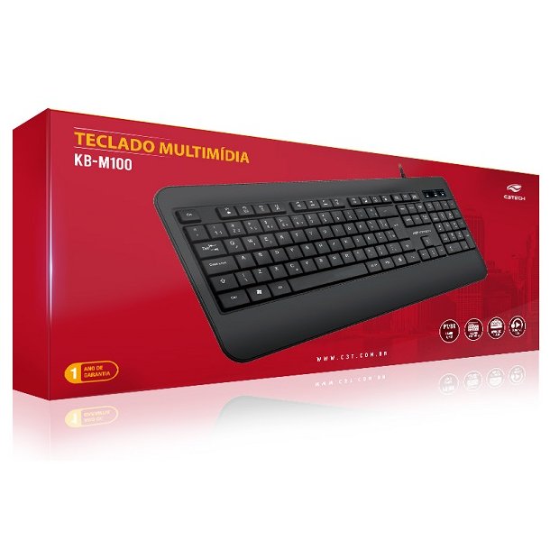Teclado Multimidia Usb Kb-m100bk Preto C3 Tech Preto
