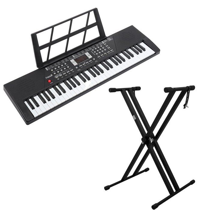 Teclado Portátil 61 Teclas Rhythmic 20 com Microfone e Suporte Estante Dupla em X RHYTMIC