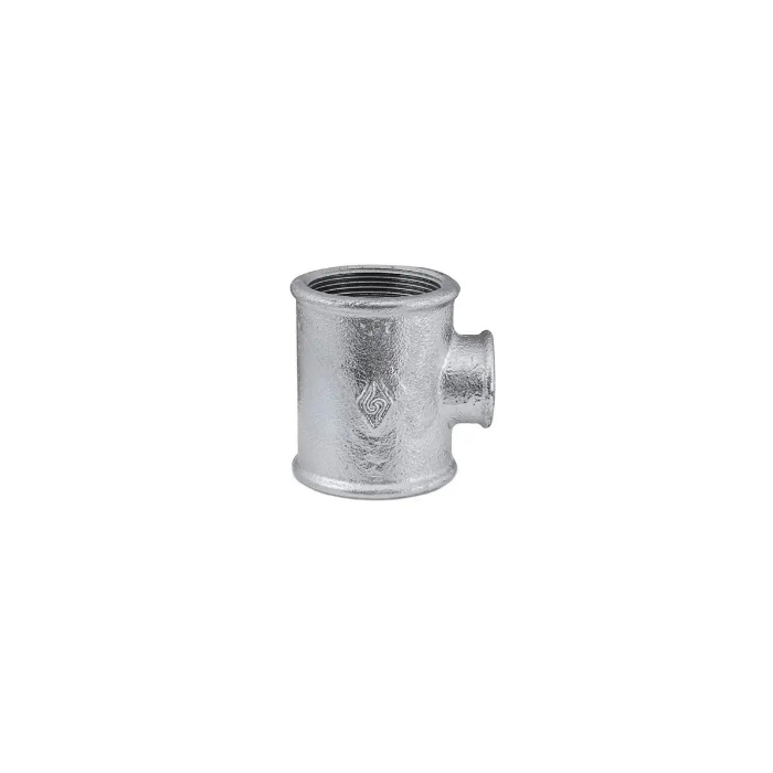 Tee de redução galvanizado 2.1/2"x2" é utilizado para redução de bitola na derivação das tubulações. A polegada menor tem uma saída central e a maior tem duas saídas da mesma bitola.