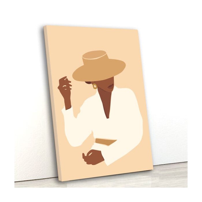 Tela canvas 60x40 ilustração de mulher com chapéu dourado
