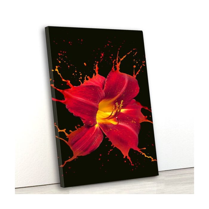 Tela canvas vert 70x45 flor vermelha com fundo preto