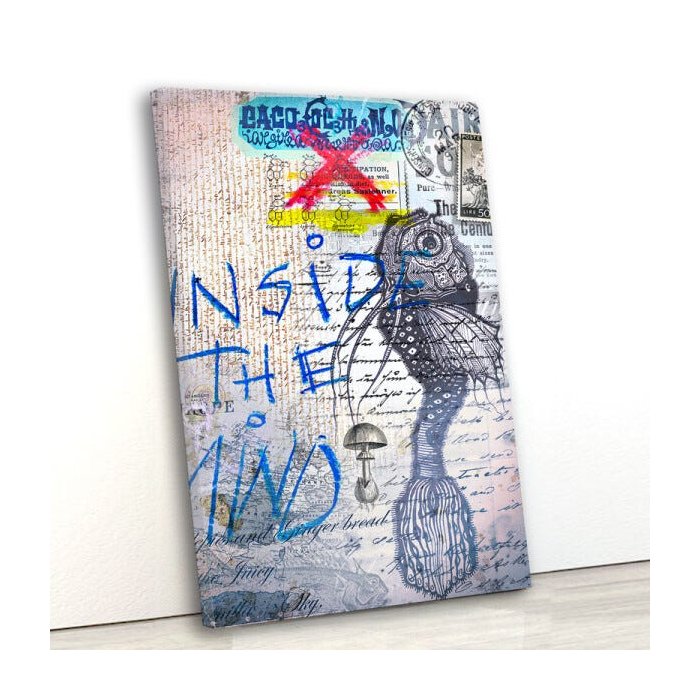 Tela canvas vert 80x55 arte de colagem com jornal e selo