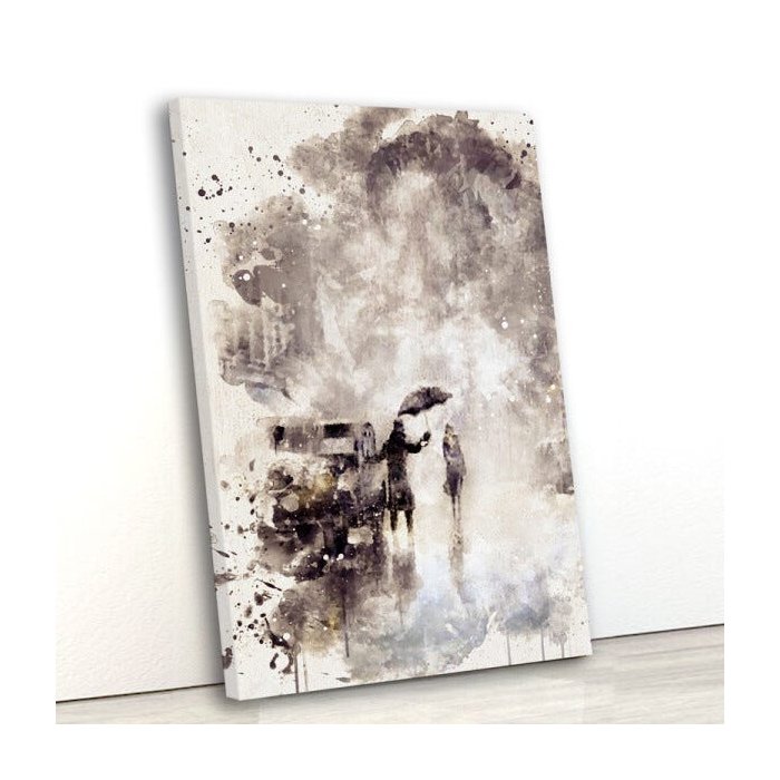 Tela canvas vert 80x55 ilustração de homem segurando guarda chuva