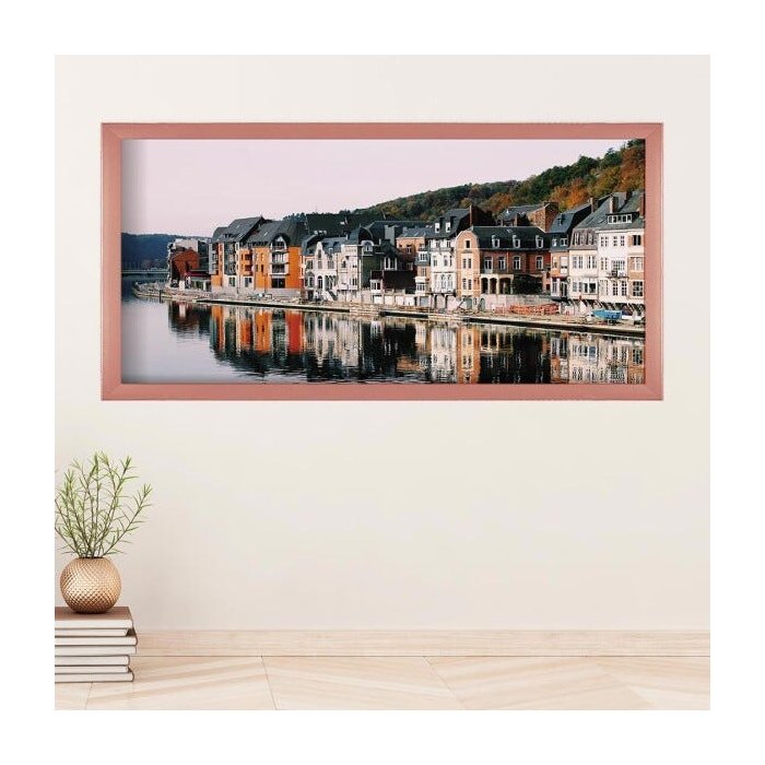 Tela com Moldura Slim Casas Frente ao Mar 60x130cm ROSE METALIZADO
