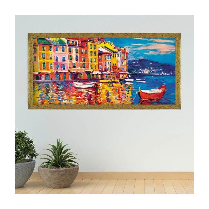 Tela com Moldura Slim Pintura 60x130cm Dourado