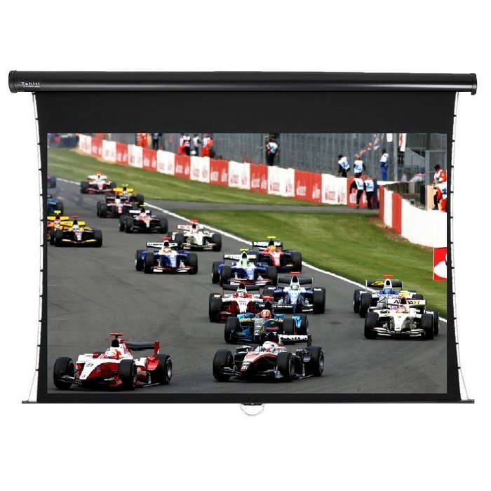 Tela versátil, indicada para uso educacional e corporativo. Seu mecanismo de enrolamento é semiautomático, por sistema de mola com parada multiponto. Pode ser fixada na parede ou no teto.