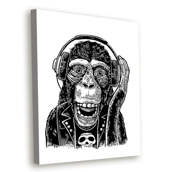 Tela Decorativa Macaco Ouvindo Música - 30x40cm -