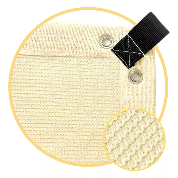 Polietileno de alta densidade e com aditivos especiais que proporcionam características importantes às telas: proteção contra raios ultravioleta e a redução da luminosidade solar.