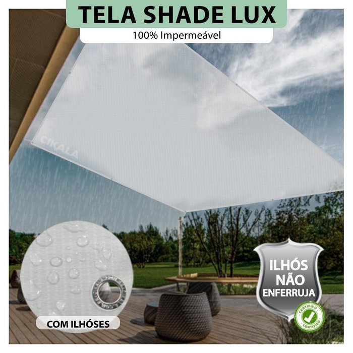 Tela Lona Sombreamento IMPERMEÁVEL SHADE LUX Com Ilhós + Kit Decore você mesmo com Shade Lux, transformando seu espaço em um ambiente moderno e elegante. É impermeável e é a solução ideal para sombreamento de áreas gourmet e piscinas.