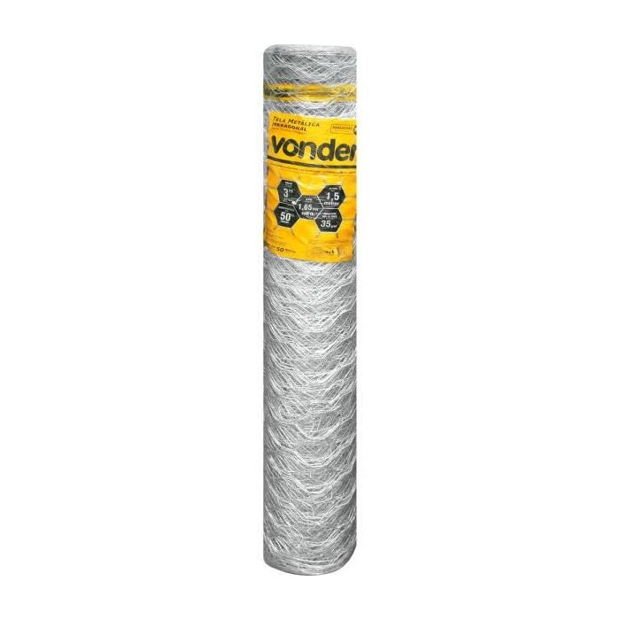Tela Metálica Mangueirão Hexagonal Malha 3" 16 Bwg x 1,5M com 50 Metros Vonder