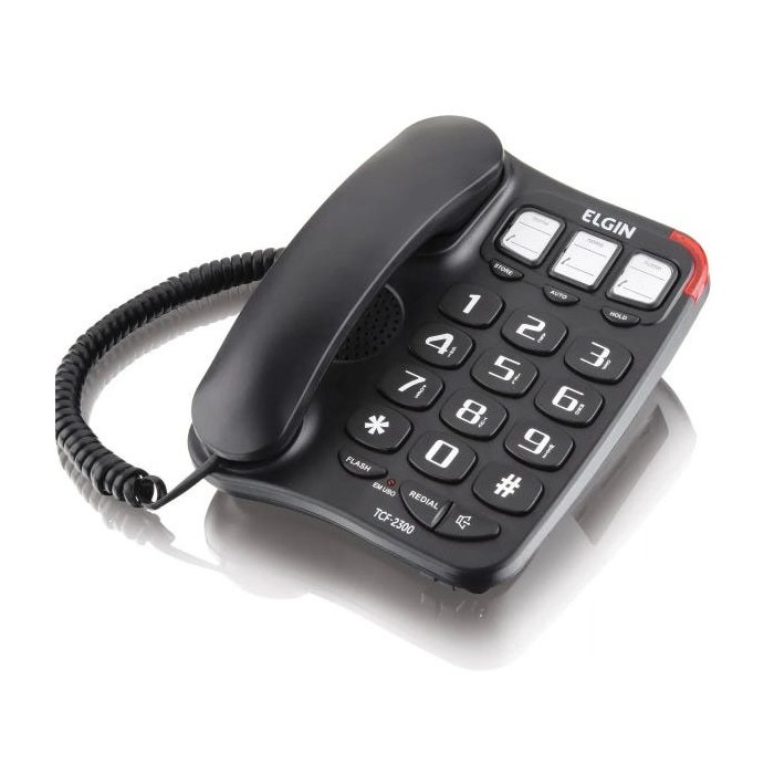 O TCF-2300 é um aparelho telefônico com fio, indicado para quem busca praticidade. Suas teclas com números grandes facilitam a visualização dos números e o processo de discagem