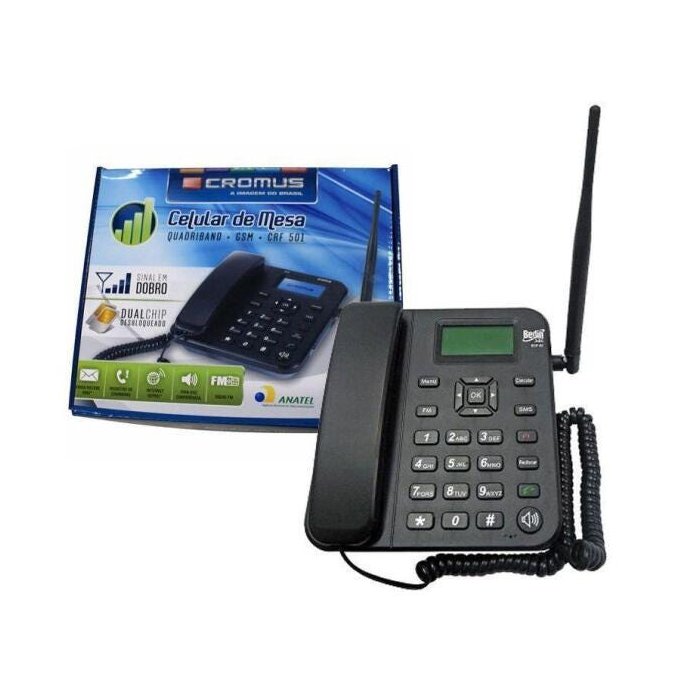 O celular de mesa cromus é um aparelho desenvolvido para trazer a tecnologia dos Telefones celulares para dentro da sua propriedade, seja ela no campo, litoral ou mesmo dentro de centros urbanos. Basta colocar o chip da operadora de sua escolha no celular de mesa para fazer ligações, enviar e receber mensagens sms. Para garantir maior sinal, é necessário o uso da antena externa cromus.