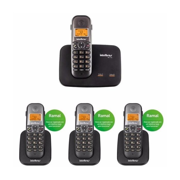 Telefone sem Fio Intelbras TS 5150 2 Linhas 1,9 Ghz Dect 6.0 + 3 Ramal sem Fio TS 5121 1,9 Ghz