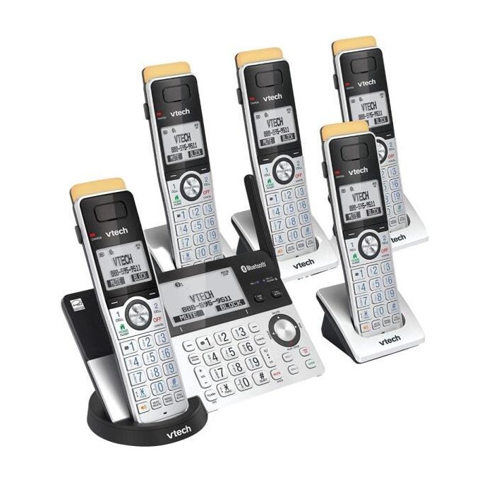 VTech IS8151-5 Super Long Range 5 Handset DECT 6.0 Telefone sem Fio para casa com secretária eletrônica, alcance de 2300 pés, bloqueio de chamadas, Bluetooth, fone de ouvido, backup de energia, intercom, expansível até 12 HS