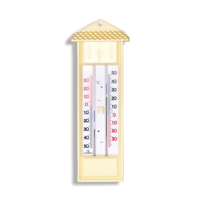 O termômetro de máxima e mínima registra as variações das temperaturas ocorridas, em um ambiente num período de tempo pré-estabelecido. Ele nos fornece três valores: temperatura mínima, temperatura máxima e a temperatura do momento