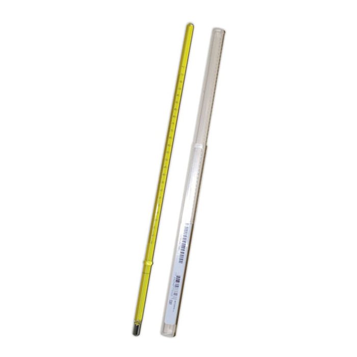 | Detalhes Técnicos | Número: 9C; Escala: -5 +110 °C; Divisão: 0,5°C; Comprimento: 290mm; Imersão: 57mm; |