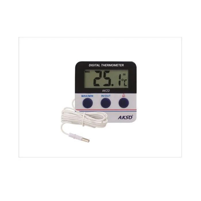 - O Termômetro com Alarme INS-22 é um simples e prático instrumento de medição de temperatura com escala de -50 a 70°C (sonda) e -20 a 70º (ambiente). Com amplo visor de LCD, esse modelo possui registros de máxima e mínima e alarme configurável de temperatura alta e baixa para sonda externa.