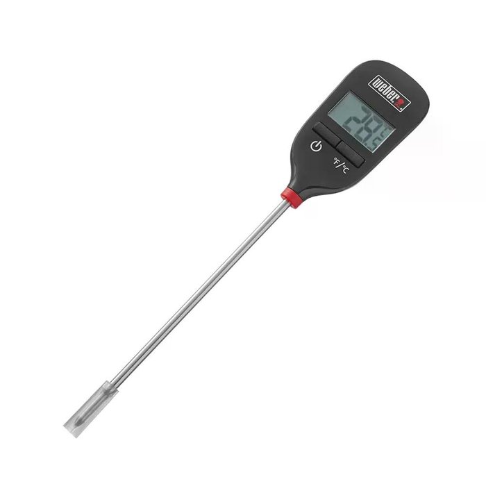 Detalhe do Produto Material: Inox e Plástico Dimensões Altura: 3,8cm Largura: 1,3cm Profundidade: 20,3cm Descrição Fabricado pela americana Weber, o termômetro é o utensílio indispensável para o seu churrasco. Produzido em aço inox de alta qualidade possui faixa de medição de 0°C a 230°C que possibilita medir a temperatura interna do alimento, perfeito para atingir o ponto ideal da sua carne. Ficha técnica: • Código: 4082070205 • Marca: Weber • Conteúdo da Embalagem: 1 Termômetro • Material: Aço Inox • Temperatura: De 0°C a 230°C • Peso: 226g • Dimensões: 3,81cm x 1,27cm x 20,32cm (AxLxP) • Garantia: 2 Anos Sobre a Marca A Weber foi fundada em 1952 pelo norte-americano George Stephen, que, frustrado com as opções de churrasqueiras disponíveis no mercado, desenvolveu, a partir uma boia náutica, a primeira churrasqueira com tampa que, ao longo do tempo, se tornaria ícone americano. Presente em mais de 32 países, a Weber está entre as marcas mais reconhecidas e confiáveis do mundo. Disponíveis em diversos modelos, sua qualidade torna a Weber garantia de robustez e longevidade.