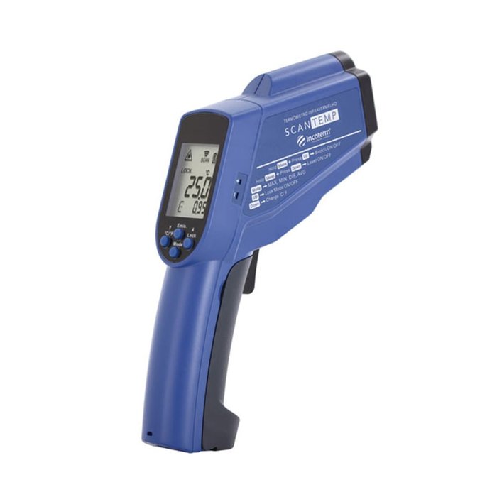 | Detalhes Técnicos | Detecção rápida e medições precisas sem contato MIra laser dupla Superfície plana incoparável, projeto moderno do dispositivo e Travamento do gatilho Gravação automática de dados Emissividade digitalmente ajustável de 0.10 até 1.00 Exibição de temperaturas MAX,MIN, AVG (média) e DIF Visor em cristal líquido (LCD) iluminado Seleção automática de alcance e resolução do visor 0.1 ºC Configuração de alarmes de temperatura alta e baixa Conexão para sonda termopar |