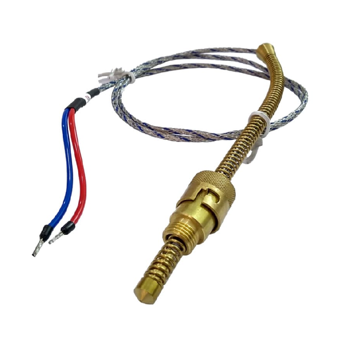 Os termopares do tipo J (Ferro-Constantan) são dispositivos confeccionados com haste de aço inox, cabo de fibra de vidro flexível com malha de cobre estanhado.