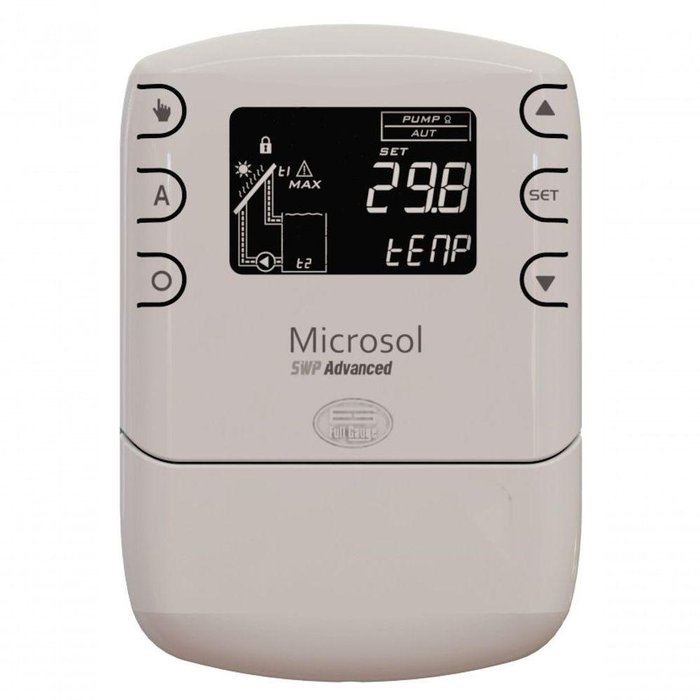 O Termostato MICROSOL SWP é um diferencial para aquecimento solar que comanda a bomba de circulação de água através do diferencial de temperatura entre o coletor solar e a piscina ou reservatório térmico. O controlador possui funções que evitam o superaquecimento e o congelamento da água no coletor solar.