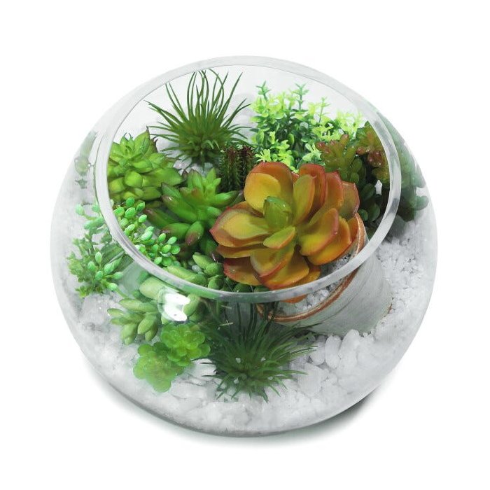 Terrário no Vidro Redondo com Suculentas Cactos Permanentes
