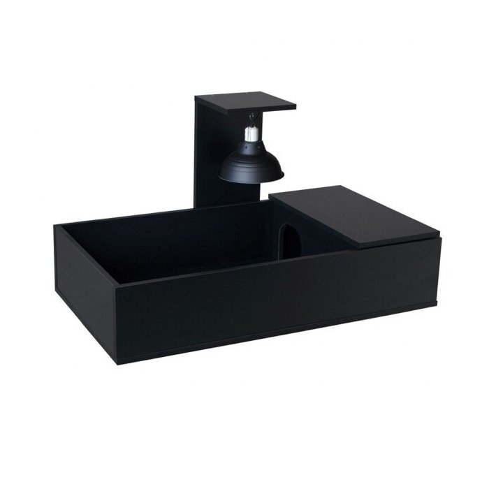 O Terrário Para Jabuti Tartaruga foi projetado de uma forma que melhor atende esses animais, pois possui uma área totalmente aberta sendo assim podendo obter mais ventilação e exposição aos raios solares, tendo como como refúgio uma toca integrada para garantir a termorregulação com total eficência, este terrário é a alternativa perfeita para seu animal obter boas condiçoes em cativeiro. Cor: preta Dimensões: 90x46x22cm CxLxA Atenção: qualquer acessório ou elemento decorativo apresentado em suas fotos não acompanha o terrário as fotos são somente para apresentação