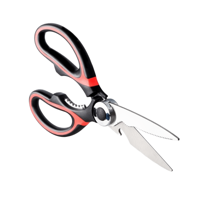 Tesoura de Cozinha Multi Função em Aço Inox 21cm Prata, Preto com Vermelho