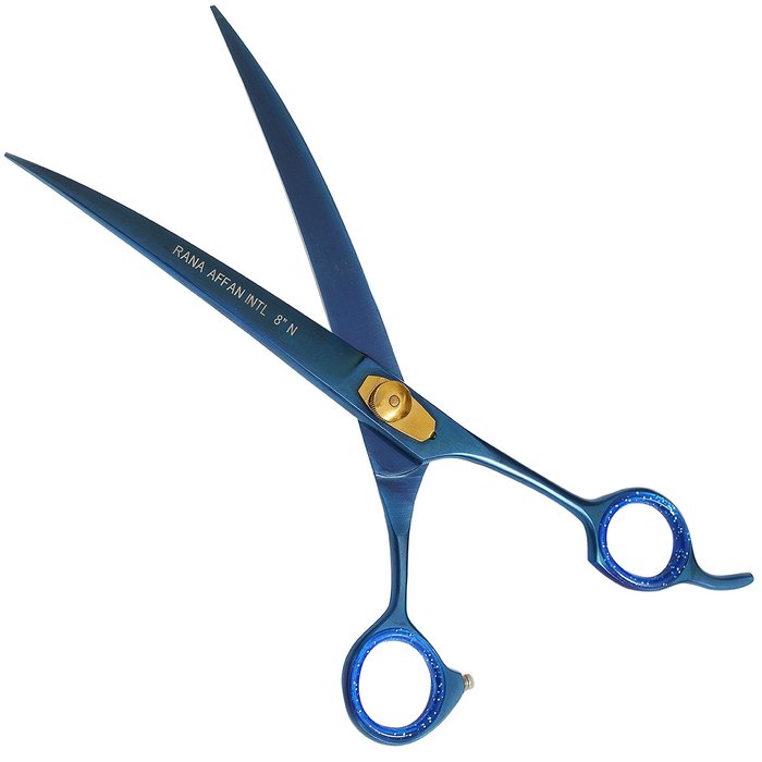 A tesoura curva tem como principal indicação o acabamento da tosa, principalmente para dar visuais arredondados, possibilitando corte mais bem definidos em regiões de difícil manipulação. É ideal para cortes próximos aos olhos, ao fazer os contornos da cabeça e da face, o acabamento nos pés e ao redor da virilha. A empresa Ranna Affan Intl Trading vem atuando no mercado Pet no Brasil, Estados Unidos e Paquistão, ganhando cada vez mais visibilidade, se destacando entre os fornecedores de produtos Premium no ramo de tosa. As tesouras R.A.I. possuem acabamento impecável, alta performance e leveza, proporcionando conforto no manuseio, amenizando a sensação de cansaço ao longo do dia. Possui durabilidade e possibilita o ajuste da tensão das lâminas através do tensionador sem necessidade de ferramentas.