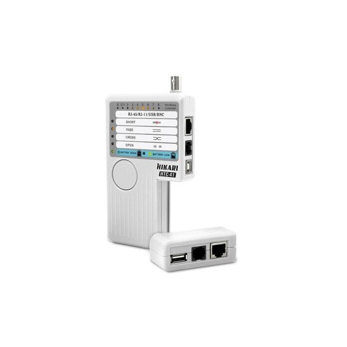 O testador multifuncional HTC-41 foi projetado para utilização em auxílio e manutenção de redes (network) e testes em cabos, permitindo uma verificação rápida de condições de conexão RJ-45 em redes de banda larga, cabos telefônicos RJ-11, cabo coaxial BNC e conexão USB.