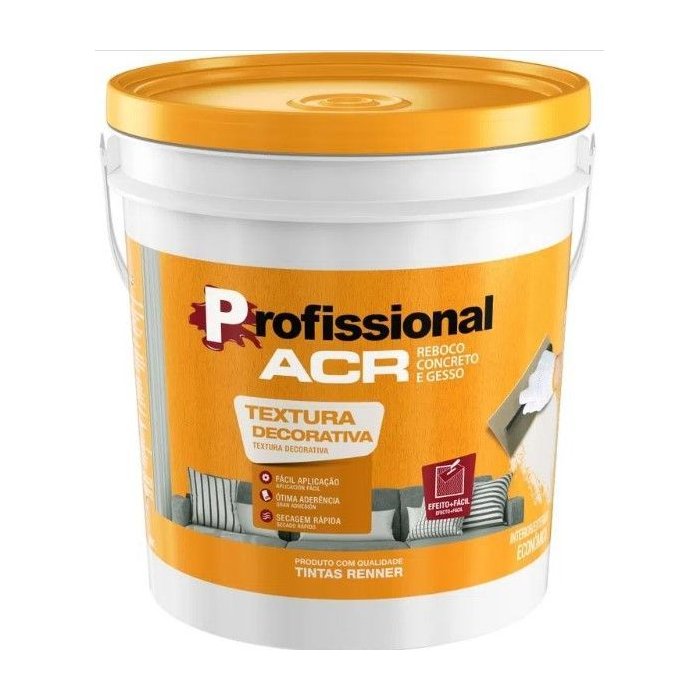 Textura Rústica Profissional ACR proporciona um efeito decorativo e intenso que valoriza os ambientes com muita elegância e sofisticação. Textura Profissional ACR possui grande poder de enchimento, fácil aplicação, secagem rápida e alta res
