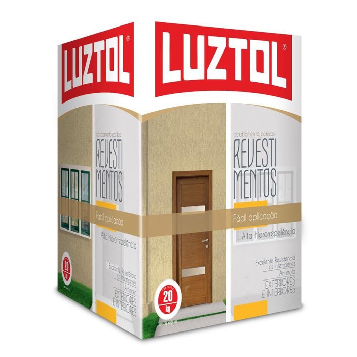 Descrição: Revestimento Acrílico Textura Informações do Produto: Revestimento Acrílico Textura possui ótima hidrorrepelência e excelente resistência à intempéries. O produto reproduz um belo efeito que disfarça imperfeições na superfície por sua alta consistência. Além disso, confere ao aplicador fácil manuseio por sua secagem equilibrada que evita manchas e facilita a homogenização do produto na superfície. A textura da Luztol possui dezenas de cores em linha com alinhamento fiel nos tons das tintas lisas, que podem ser utilizadas como fundo proporcionando maior praticidade para o resultado final. OBS: Deve ser aplicado utilizando rolos específicos para revestimentos como rolos para texturas baixo, médio, alto e "macarrão". Os acabamentos são muito variados e dependem muito do conhecimento técnico do profissional. Informações Técnicas: Indicações de Uso: Para pintura de prédios, muros e paredes em geral Acabamento: Texturizado de médio relevo Diluição: Até 30 ml de água limpa por kg Rendimento: Caixa 20 kg: até 12 m² por demão O rendimento do produto depende diretamente da absorção da superfície, gramatura e conhecimento técnico do aplicador Secagem: Ao toque: 1 hora Final: 72 horas Demãos: 1 demão Composição: Resina acrílica, quartzos de alta resistência, pigmentos, preservantes, água e aditivos Normas: Produto classificado conforme a Norma da ABNT-NBR 11702:2010 Tipo 4.6.2 Imagem Meramente Ilustrativa