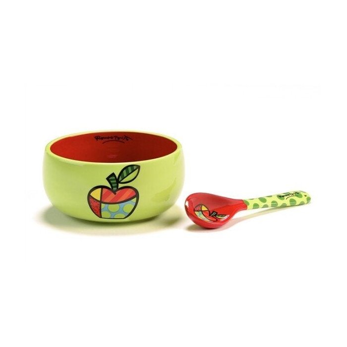 Tigela Com Colher Maça Em Cerâmica Romero Britto