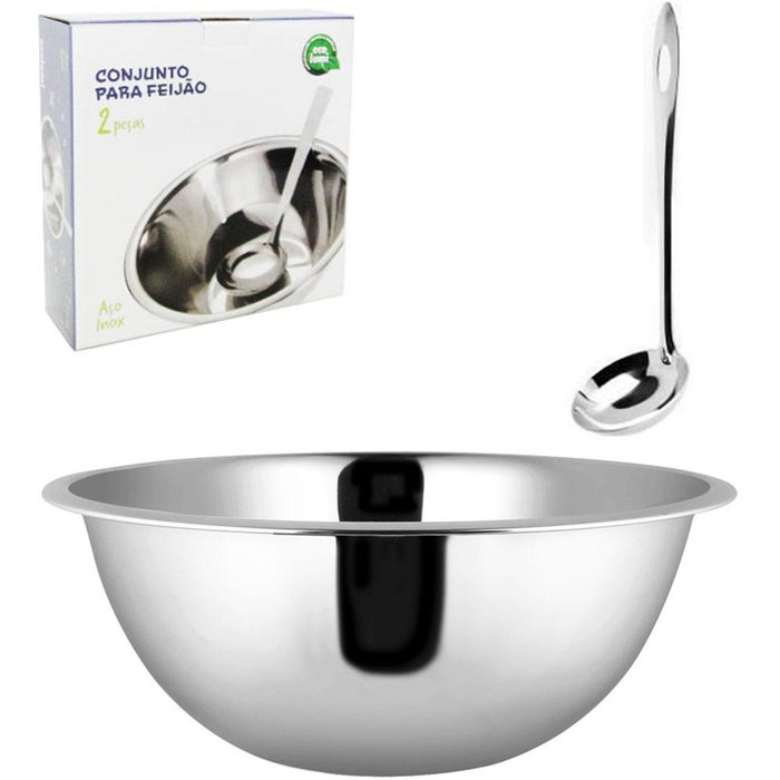 Tigela Redonda Bowl Com Concha De Inox Para Feijao Na Caixa