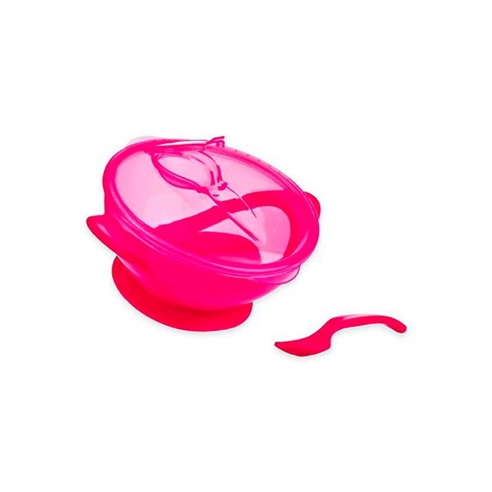 Sua tampa possui um design especial para acomodar a colher e sua base com ventosa ajuda a evitar que o bebê mova o pratinho e faça sujeira. A tampa possui uma excelente vedação, podendo também ser levado em viagens e passeios.