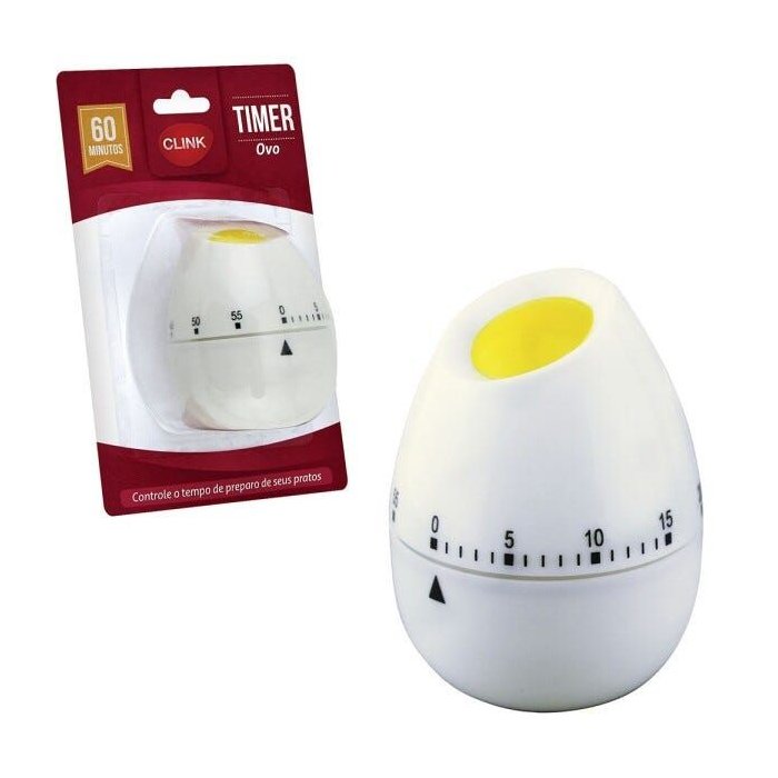 Confira esse Timer Manual Culinário Modelo Ovo, ele permite que você controle o tempo na hora de preparar suas receitas favoritas. O timer ovo tem um designer moderno, feito de plástico resistente seu temporizador é feito com um sistema mecânico que dispensa o uso de pilhas ou baterias.