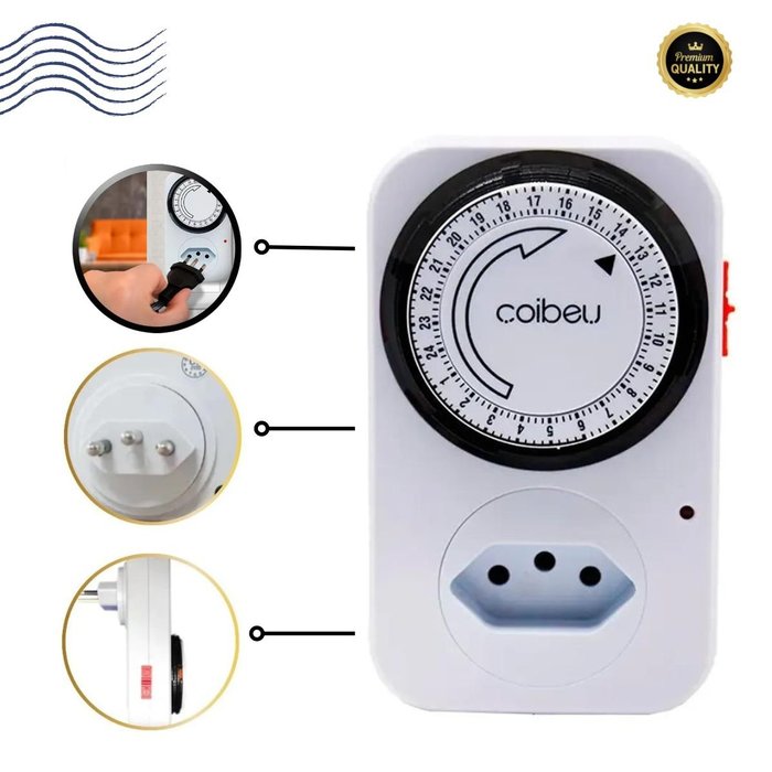 O Temporizador Analógico 24 Horas é programável, um temporizador automático que liga e desliga aparelhos em horários programados pelo usuário com intervalos de 15 minutos.