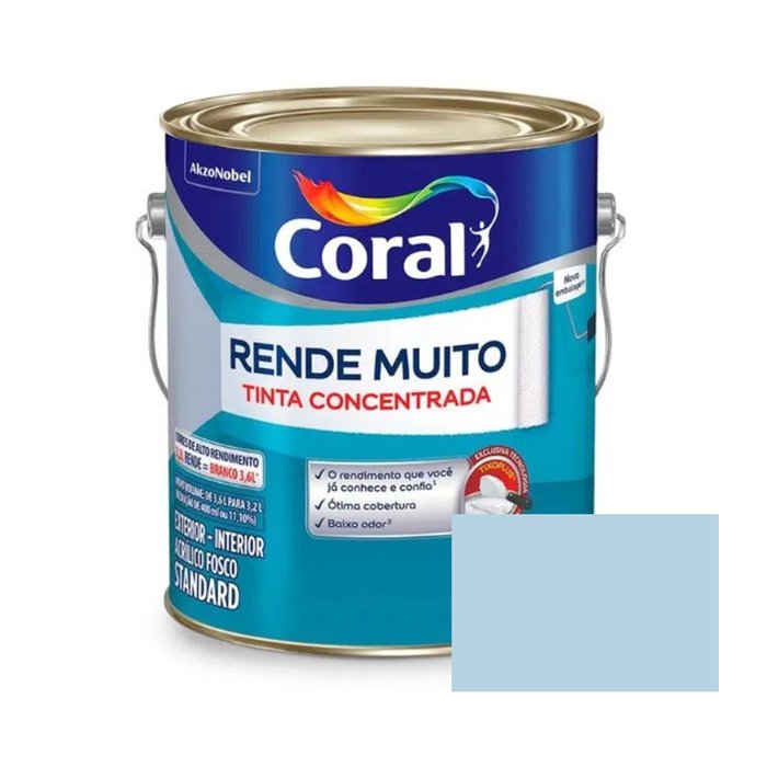 Tinta Acrílica Acabamento Fosco Rende Muito Concentrada Azul Sereno 3,2 litros Coral