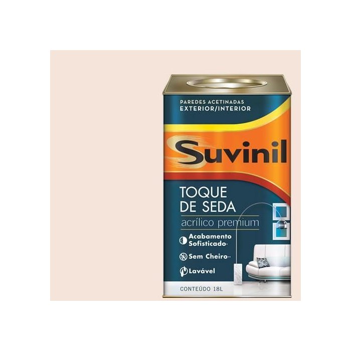 Descrição: Tinta acrílica Toque de Seda Suvinil. Tinta acrílica na cor branca com acabamento acetinado. Indicada tanto para uso interno ou externo tem alta durabilidade e cobertura com acabamento sofisticado.