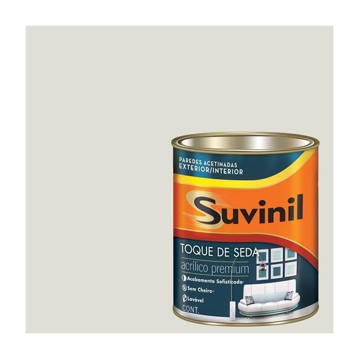 Descrição: Tinta acrílica Toque de Seda Suvinil. Tinta acrílica na cor branca com acabamento acetinado. Indicada tanto para uso interno ou externo tem alta durabilidade e cobertura com acabamento sofisticado.
