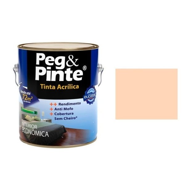 Peg & Pinte Tinta Acrílica é uma tinta fosca de acabamento com custo econômico e boa qualidade, indicada para a pintura de superfícies internas de reboco, massa acrílica, texturas, concreto, fibrocimento, massa corrida, gesso, repinturas sobre PVA e acrílico. É de fácil aplicação, com boa cobertura e rendimento.
