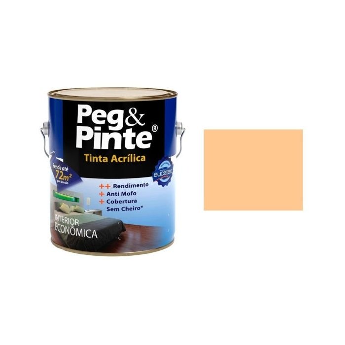 Peg & Pinte Tinta Acrílica é uma tinta fosca de acabamento com custo econômico e boa qualidade, indicada para a pintura de superfícies internas de reboco, massa acrílica, texturas, concreto, fibrocimento, massa corrida, gesso, repinturas sobre PVA e acrílico. É de fácil aplicação, com boa cobertura e rendimento.