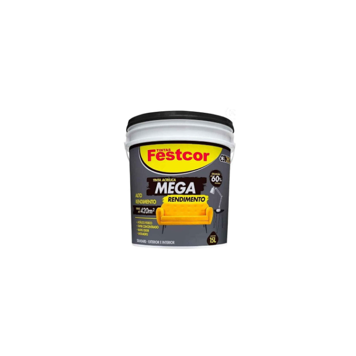Tinta Acrílica, da Festcor indicada para pintura, decoração, superfícies de alvenaria, concreto, fibrocimento, e massa corrida de ambientes exteriores e interiores. Possui boa cobertura, baixo odor, anti-mofo, secagem rápida e fácil aplicação.