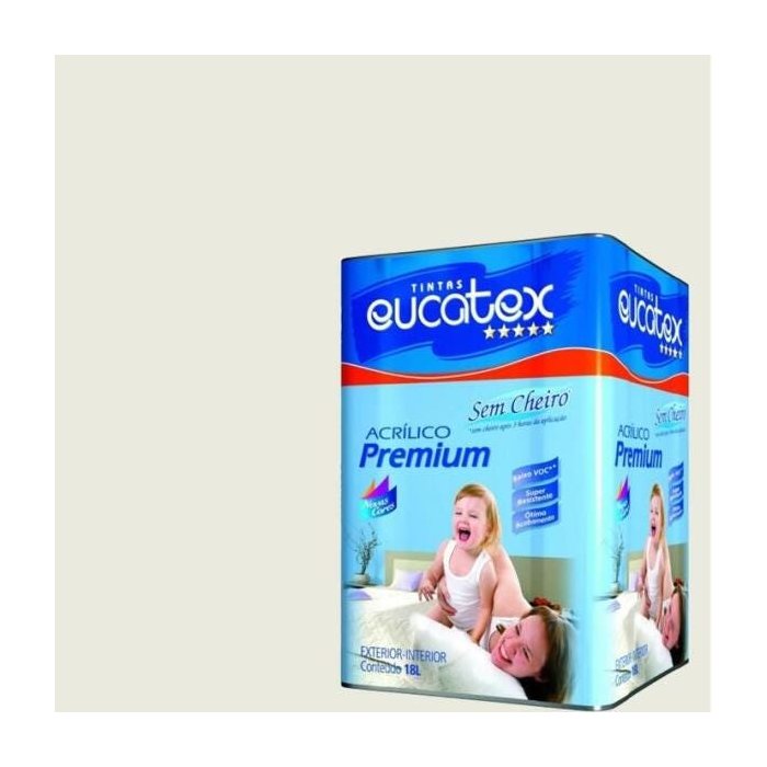 Descrição Eucatex Acrílico Premium Sem Cheiro é uma tinta de alta performance para quem busca melhor desempenho e maior durabilidade e rendimento em pinturas de áreas externas e internas. De fácil aplicação, oferece ótima cobertura, baixo respingamento, é resistente às intempéries, tem excelente alastramento e ótimo acabamento. É indicada para superfícies externas e internas de reboco, massa acrílica, texturas, concreto, fibrocimento, repinturas sobre PVA e acrílico e superfícies internas de massa corrida e gesso.