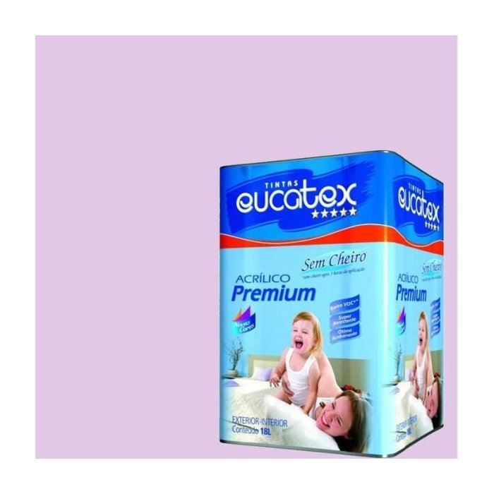 Descrição Eucatex Acrílico Premium Sem Cheiro é uma tinta de alta performance para quem busca melhor desempenho e maior durabilidade e rendimento em pinturas de áreas externas e internas. De fácil aplicação, oferece ótima cobertura, baixo respingamento, é resistente às intempéries, tem excelente alastramento e ótimo acabamento. É indicada para superfícies externas e internas de reboco, massa acrílica, texturas, concreto, fibrocimento, repinturas sobre PVA e acrílico e superfícies internas de massa corrida e gesso.