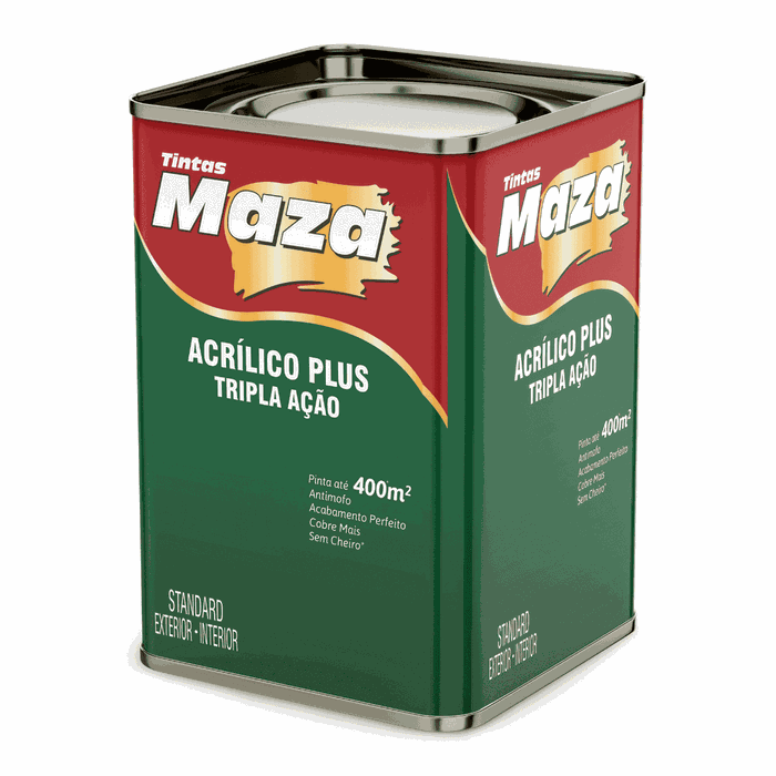 Cores Tintas Ribeirão, A Loja de tintas com as melhores marcas, Suvinil, Coral e Maza, Tintas Latex e Acrílicas.Tinta Acrílica Fosca Plus Tripla Ação Standard Maza, Indicada para Paredes, Reboco, Concreto, Fibrocimento, Texturas e Drywall.