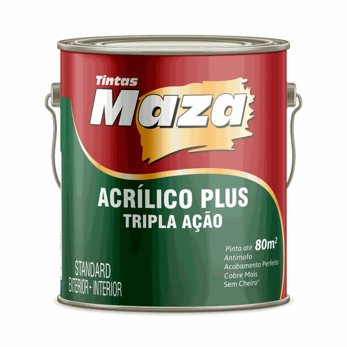 Cores Tintas Ribeirão, A Loja de tintas com as melhores marcas, Suvinil, Coral e Maza, Tintas Latex e Acrílicas.Tinta Acrílica Fosca Plus Tripla Ação Standard Maza, Indicada para Paredes, Reboco, Concreto, Fibrocimento, Texturas e Drywall.